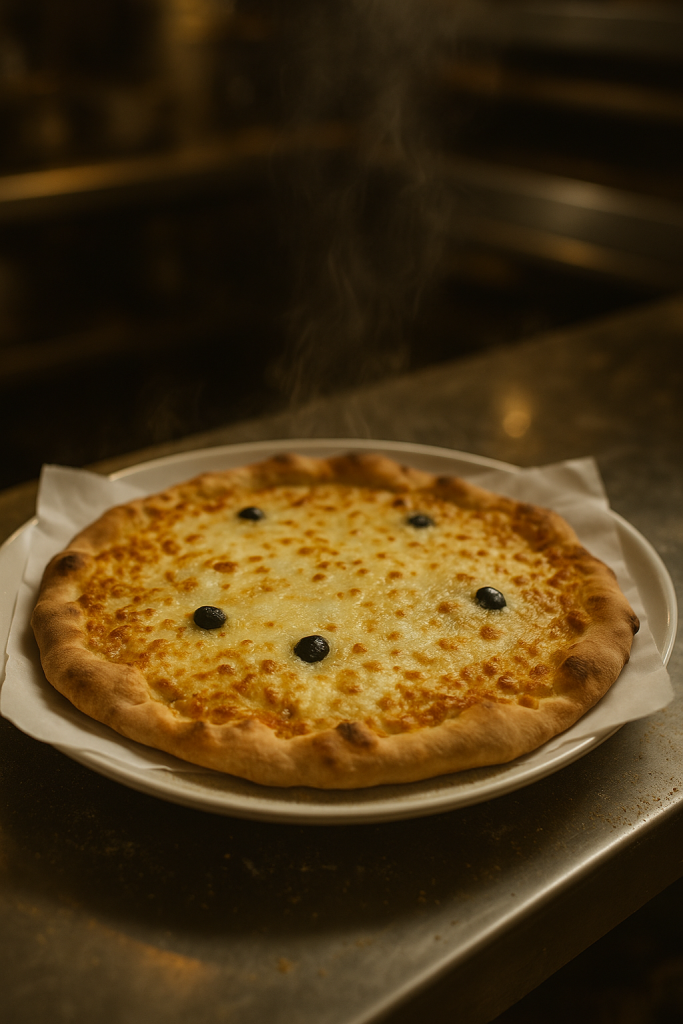 Base Blanche – Mozza, Emmental, Gorgonzola, Chèvre, Olives.